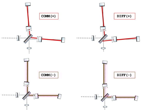 where and are the distances of the two input mirrors of the Fabry-Perot cavities from the beam splitter (Figure 1) and the reflection and transmission coefficients can be written as: