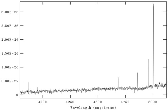 Our VLT FORS2 nebular blue spectrum where the HeII 4686 Å, emission lines and [OIII] 4959, 5007 Å doublet are clearly visible.
