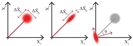 - Collett, M.J.; Gardiner, C.W. Squeezing of Intracavity and Traveling-Wave Light Fields Produced in Parametric Amplification. Phys. Rev. A 1984, 30, 1386–1391. [Google Scholar] [CrossRef]