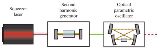 - Aoki, T.; Takahashi, G.; Furasawa, A. Squeezing at 946 nm with periodically poled KTiOPO4. Opt. Express 2006, 14, 6930–6935. [Google Scholar] [CrossRef] [Green Version]