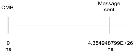 Finally, a more precise way to indicate when the message was sent would be to use the spin-flip transition of neutral hydrogen in combination with a timeline and the CMB. As previously mentioned, the spin-flip transition of the H2 molecule was used as the metric of length and time on the Pioneer and Voyager messages. The frequency of the hydrogen atom electron is about 1420.406 MHz, which corresponds to a period of 0.704 ns and a vacuum wavelength of 21.106 cm (length). Using the CMB as a starting reference on the timeline, calculation of the time the message was sent out is possible using the math operators explained earlier. On the timeline the origin of the CMB (13.787 ± 0.020 billion years ago) would be zero and the time when we write this sentence today, as measured from this beginning, would be ~4.354948799 1026 ns (Figure 2). Thus, if giving the age of the universe directly in terms of hydrogen spin flips, our time is ~6.19 × 1026 periods with an uncertainty of ±0.145% [21]. Using the math operators, the ETIs would be able to calculate the time interval between receiving the message and when the message was actually sent from Earth. Note that given the criticality of the timestamp, any subsequent transmissions to the BITG message which humanity sends forth will require an update of the timestamp in the aforementioned terms.