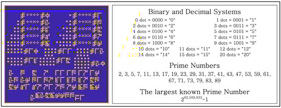 - Dutil, Y.; Dumas, S. Annotated Cosmic Call Primer. Available online: https://www.smithsonianmag.com/science-nature/annotated-cosmic-call-primer-180960566/ (accessed on 23 March 2022).