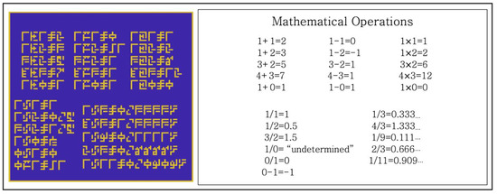 A logical evolution of information would be the progression of mathematics: basic operands such as addition, subtraction, multiplication, and division; additionally, the more advanced concepts connected to the idea of division are included in continuity and undetermined. This information is at the core of our mathematics and is used later in the message to describe large values or more advanced concepts—or for any follow-up messages sent in the future. This represents the first real test of the message’s comprehensibility from human terms. Emulating, in essence, the progression of the human learning process, the page begins with basic addition, subtraction, and multiplication, starting with 1 + 1 and 1 – 1 being the simplest operations in our mathematics, and 1 1 being the simplest multiplication possible. These basic operand rules and their special rules are taught in a logical progression such as we learn in early grade school. For example, on the fifth line of the page the identity rules of addition and subtraction and the zero rule of multiplication are introduced, these being essential mathematical properties of which any intelligent extraterrestrial should logically possess an equivalent. The more complex idea of division (from the human perspective)—especially with irrational numbers—is introduced last, along with the continuity symbol, the concept of undetermined numbers, and the identity rule of division. Page 2 of the message, as shown in Figure 8 builds off the previous introduction to math and serves as a good segue into the more complex ideas to follow [14].