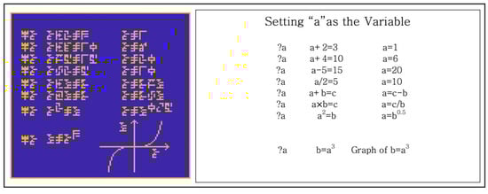 After exponentials and roots are described in the BITG message, the groundwork will have been laid for the final math concept of algebra to be introduced. Algebra is the basis for all advanced topics of science and every area of physics requiring expression in equation form. Thus, in order to establish a basis for scientific communication whether in this message or future messages, the topic of algebra must be considered foundational. In Figure 10 the fourth page of the message is presented—and here algebra is introduced [14]. The page begins with basic algebraic functions used in solving for a single variable, in this case symbolically depicted as “a” with a question mark before the “a” to signify the focus on “a” as an unknown to be solved for and the “?” as a signifier of inquiry. The page progresses from single variable addition to single variable division, solving for “a” in each case starting with the simpler operations such as addition and subtraction before progressing to multiplication and division. Once the topic is properly exemplified, the message proceeds to use multiple variable algebra, describing the variable “a” in terms of two other variables: “b” and “c”. Finally, the message ends the page with the idea of plotting variables against each other with a graph displaying a cubic function “a” with respect to “b”. As previously discussed, it is believed that mathematics is a universal concept that must accompany technological intelligence; thus, the first four pages of the message serve as our introduction for any ETIs into that realm of fundamental knowledge and the ways of human thinking [14].