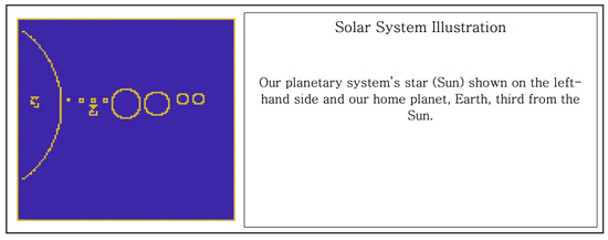 Following the description of our galactic address, we also include a map of the Solar System itself with indication of where the Earth is found relative to our host star and the other planets—along with a digitized map of Earth with relative proportions of land to water. This provides the ETI with the necessary information to make contact with us either by sending a follow on transmission to Earth or, if their technology is sufficiently advanced, sending a physical vehicle to Earth at some point in the future.