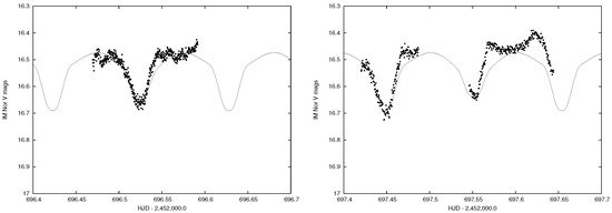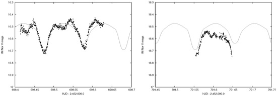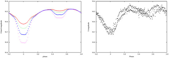- Wilson, R.E. Eccentric orbit generalization and simultaneous solution of binary star light and velocity curves. Astrophys. J. 1979, 234, 1054–1066. [Google Scholar] [CrossRef]