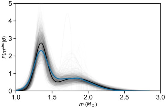 To visualize the form of the mass distribution, we have drawn 1000 posterior samples from the master sample discussed in [36], and taken their mean to compare with the maximum a posteriori distribution obtained. The result confirms the presence of two maxima as explained.