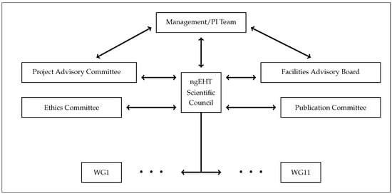 To give the reader a tentative first impression of what such a governance model might look like, we sketch here an initial suggestion. We view this as the beginning of an ongoing conversation about the optimal governance model for the ngEHT collaboration. This model will then be iteratively tested and improved, especially with regards to how it facilitates knowledge formation and adapted as circumstances change. Given that the nascent ngEHT collaboration has already begun to take shape, it is crucial that this group make what recommendations we can—however preliminary—at this early stage. We are now in a position to influence organizational structures that may become increasingly entrenched as the ngEHT project gains momentum.