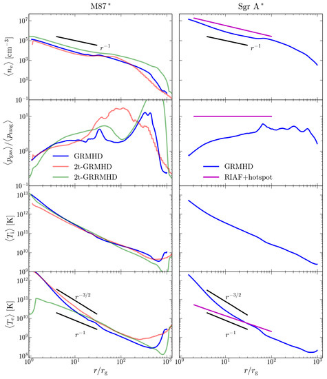 - Ressler, S.M.; Tchekhovskoy, A.; Quataert, E.; Chandra, M.; Gammie, C.F. Electron thermodynamics in GRMHD simulations of low-luminosity black hole accretion. Mon. Not. R. Astron. Soc. 2015, 454, 1848–1870. [Google Scholar] [CrossRef]