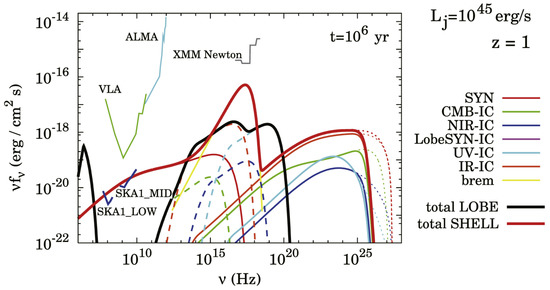 - Ito, H.; Kino, M.; Kawakatu, N.; Orienti, M. The Fate of Dead Radio-loud Active Galactic Nuclei: A New Prediction of Long-lived Shell Emission. Astrophys. J. 2015, 806, 241. [Google Scholar] [CrossRef]