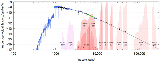 - Gregorio, A.; Stalio, R.; Broadfoot, L.; Castelli, F.; Hack, M.; Holberg, J. UVSTAR observations of Adara (epsilon CMa): 575-1250 Å. Astron. Astrophys. 2002, 383, 881–891. [Google Scholar] [CrossRef]