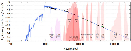 - Fitzpatrick, E.L.; Massa, D. An Analysis of the Shapes of Ultraviolet Extinction Curves. II. The Far-UV Extinction. Astrophys. J. 1988, 328, 734. [Google Scholar] [CrossRef]