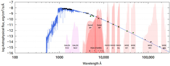 - Németh, P.; Kawka, A.; Vennes, S. A selection of hot subluminous stars in the GALEX survey - II. Subdwarf atmospheric parameters. Mon. Not. RAS 2012, 427, 2180–2211. [Google Scholar] [CrossRef]