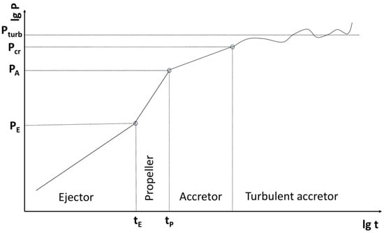 or, in terms of period, years. Here we assumed g cm2, cm, and the spin period P is taken in seconds [,]. The value of is so short relative to the spin-down time scale at the ejector stage
