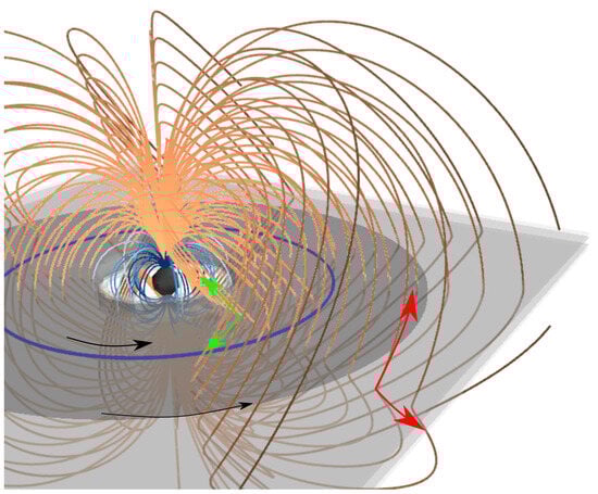- Toropin, Y.M.; Toropina, O.D.; Savelyev, V.V.; Romanova, M.M.; Chechetkin, V.M.; Lovelace, R.V.E. Spherical Bondi Accretion onto a Magnetic Dipole. Astrophys. J. 1999, 517, 906–918. [Google Scholar] [CrossRef][Green Version]