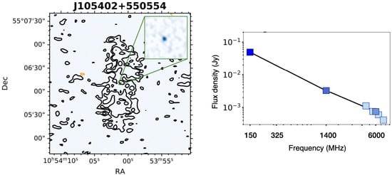 - Surveys at higher frequencies (e.g., at 1.4 GHz using the APERture Tile In Focus (Apertif) on the WSRT telescope [32] and the Australian Square Kilometre Array Pathfinder (ASKAP) [33]) and surveys at high spatial resolution (e.g., at 3 GHz, the Very Large Array Sky Survey (VLASS), [34,35]). The latter is particularly useful for characterising the spectral properties of the central regions (e.g., cores).
