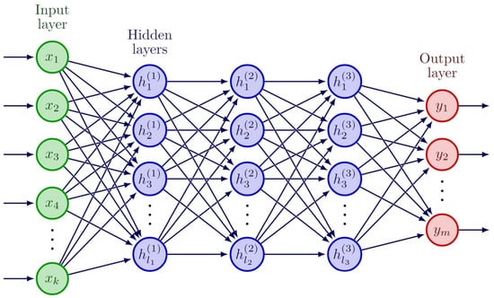 The problem is formulated as a typical supervised machine learning estimation, where inputs X are the variables in  and  and the outputs Y are the variables in . The model, denoted as F, is trained to provide an estimation such that . In this multi-output regression, the model F approximates the background photon count rates based on the variables of the satellite and its detectors. The model employed is a feed forward neural network with 3 hidden dense layers and 3 dropouts, 1 per each hidden layer; see Figure 1.