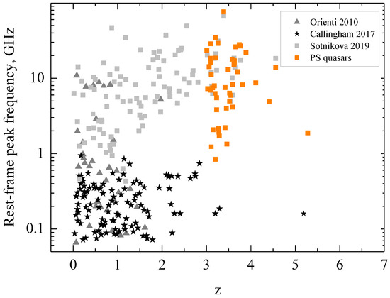 Sotnikova, Y.; Mikhailov, A.; Mufakharov, T.; An, T.; Kudryavtsev, D.; Mingaliev, M.; Udovitskiy, R.; Kudryashova, A.; Stolyarov, V.; Semenova, T. High-Redshift Quasars at z ≥ 3: Radio Variability and MPS/GPS Candidates. Galaxies 2024, 12, 25. https://doi.org/10.3390/galaxies12030025