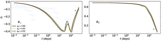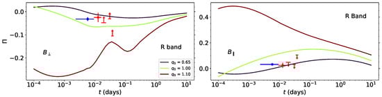 - Lan, M.X.; Wu, X.F.; Dai, Z.G. Afterglow Polarizations in a Stratified Medium with Effect of the Equal Arrival Time Surface. Astrophys. J. 2023, 952, 31. [Google Scholar] [CrossRef]