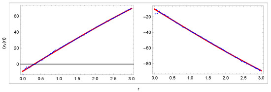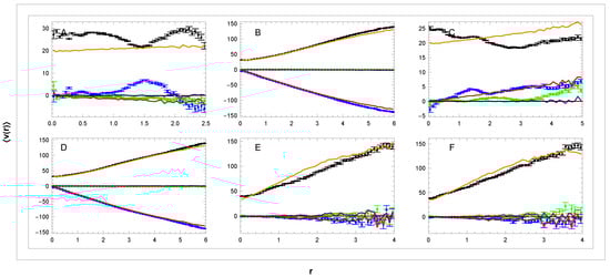 but what is the reason for the steep slope of as r increases? In the considered sectors, the mean value includes a significant contribution from the collective rotation velocity proportional to r, as explained below (Figure 9 and Equation (43)). Thus, in the B,D sectors, we have