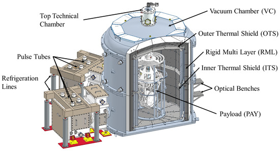 The cryostat design must meet thermal requirements to enable the cooling of the payload to its target temperature. In particular, it consists of four main components (see Figure 1):