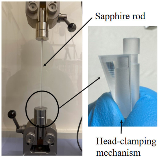 The suspension that connects the platform and the marionette is a sapphire rod of 5.4 mm in diameter and 760 mm in length. The rod is used to suspend the marionette with a mechanical mechanism of head clamping as shown in Figure 7.