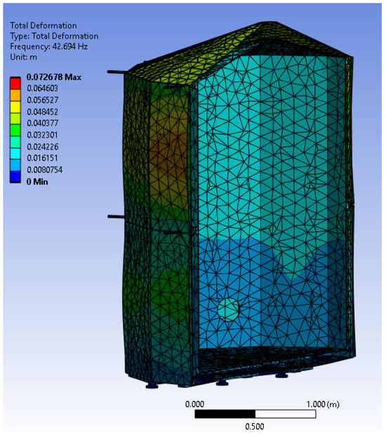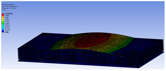 Results of modal simulations of the RML approach on one of the lateral surfaces of OTS. The figure shows the first eigenmode with its eigenfrequency value of 15.55 Hz.