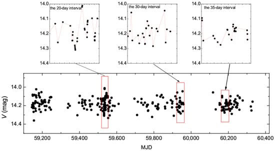 - Hrivnak, B.J.; Henson, G.; Hillwig, T.C.; Lu, W.; Nault, K.A.; Volk, K. Variability in Protoplanetary Nebulae: VII. Light-curve Studies of Five Medium-bright, Oxygen-rich, or Mixed-chemistry Post-AGB/Post-RGB Objects. Astrophys. J. 2020, 901, 9. [Google Scholar] [CrossRef]