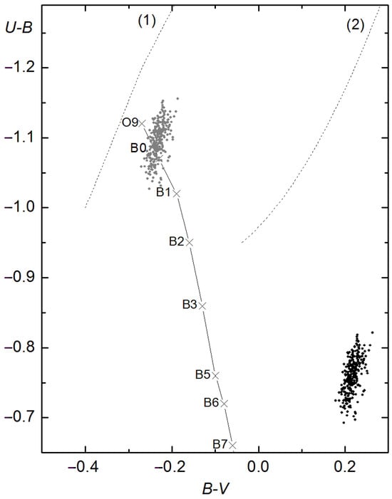 - Straižys, V. Multicolor Stellar Photometry; Pachart Pub. House: Tucson, AZ, USA, 1992; pp. 238–239. [Google Scholar]