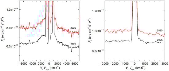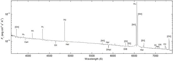 - Klochkova, V.G.; Yushkin, M.V.; Miroshnichenko, A.S.; Panchuk, V.E.; Bjorkman, K.S. Discovery of spectral variation in the optical counterpart of IRAS 01005+7910. Astron. Astrophys. 2002, 392, 143–150. [Google Scholar] [CrossRef]
