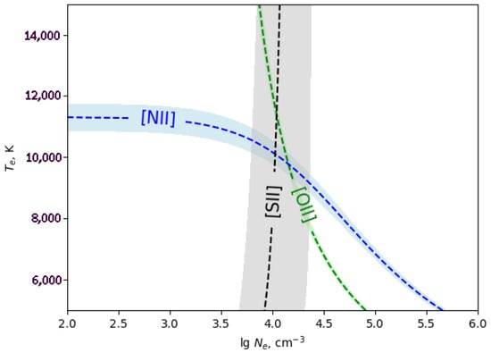 - Luridiana, V.; Morisset, C.; Shaw, R.A. PyNeb: A new tool for analyzing emission lines. I. Code description and validation of results. Astron. Astrophys. 2015, 573, A42. [Google Scholar]
