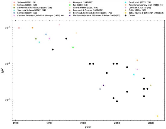 | 2 | We do not distinguish between Plummer or kernel-based softenings. Some of these simulations may also include hydrodynamical effects. |