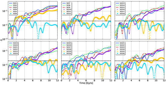 - Iannuzzi, F.; Athanassoula, E. The effect of softening on dynamical simulations of galaxies. Mon. Not. R. Astron. Soc. 2013, 436, 1161. [Google Scholar] [CrossRef]