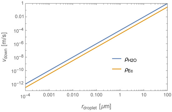 where is the droplet’s density; in our calculations, we consider the E. coli dry mass density [43] and the density of water .
