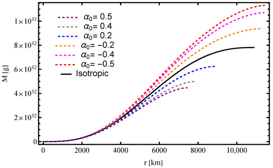 These trends are in agreement with previous studies suggesting that anisotropic effects, such as those arising from magnetic fields, rotation, or non-standard matter interactions, can increase the mass limit of compact stars beyond isotropic expectations [10,11,12].