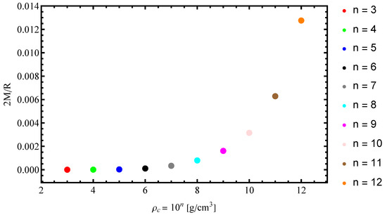 - Oppenheimer, J.R.; Volkoff, G.M. On Massive Neutron Cores. Phys. Rev. 1939, 55, 374–381. [Google Scholar] [CrossRef]