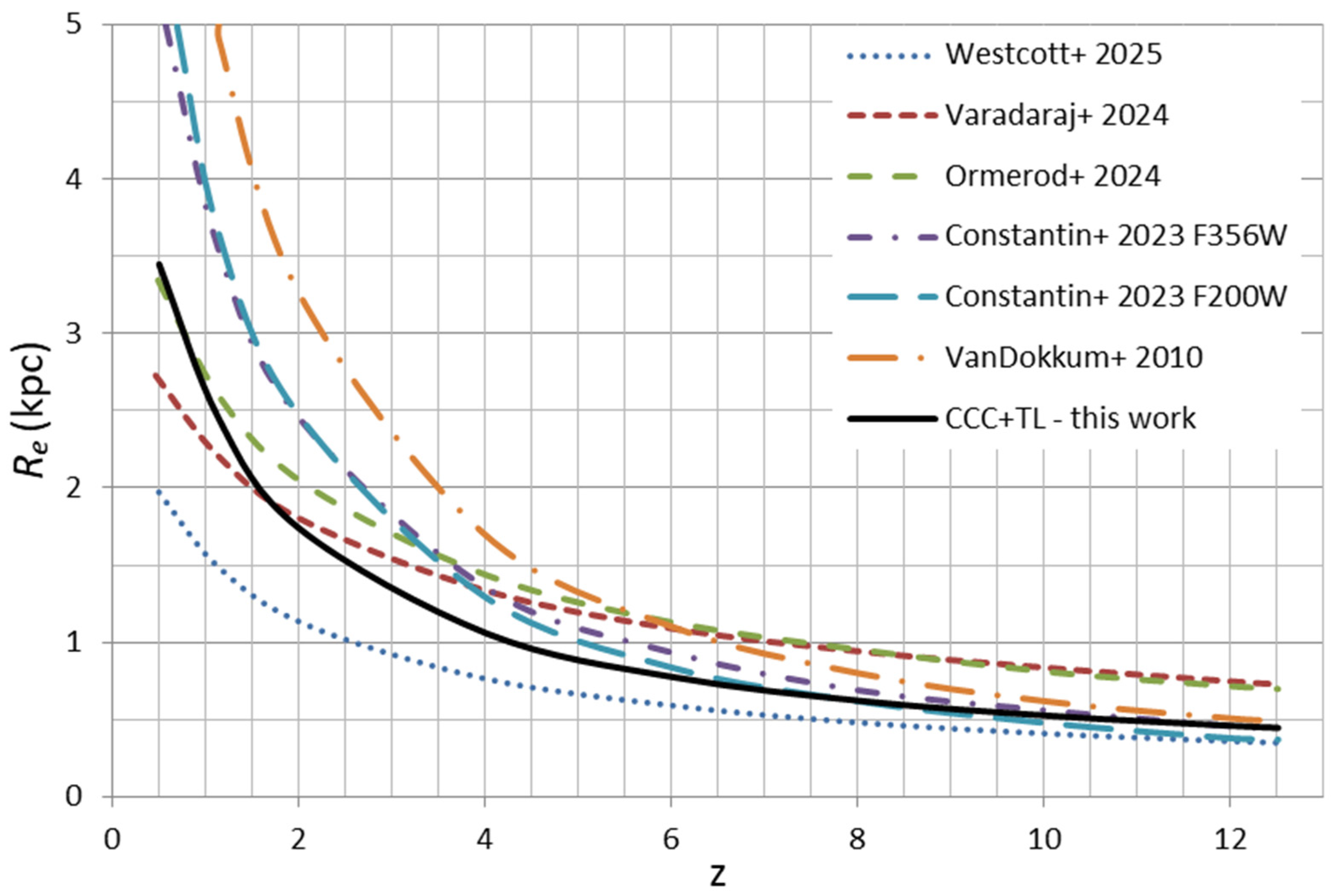 - Existence of Massive Spiral galaxies like the Milky Way with stellar mass and half-light radius 1.5 billion years after the Big Bang [45], and with and half-light radius 1 billion years after the Big Bang.