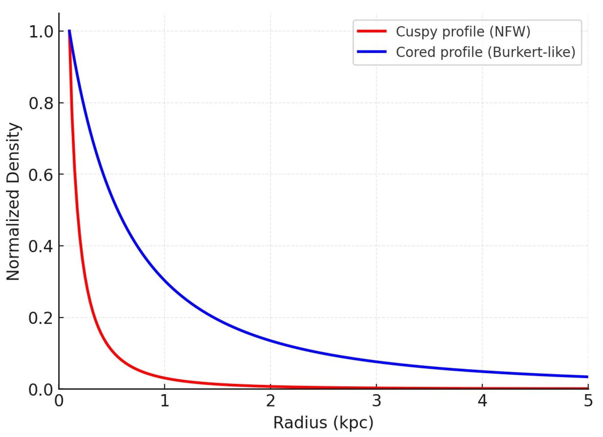 The distribution of dark matter in dwarf galaxies is a highly debated topic in modern cosmology. According to computer simulations based on the Cold Dark Matter (CDM) model, dwarf galaxies should have a dense, sharply-increasing concentration of dark matter at their core, which is called a cuspy profile. However, what has actually been observed, particularly in dwarf spheroidal (dSph) galaxies, shows a much flatter, less dense central region, or a cored profile. This conflict, called the core–cusp problem, has led scientists to develop models that include strong internal processes like supernova explosions and stellar feedback. These processes could redistribute dark matter, effectively smoothing out the central density and creating a cored profile (