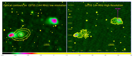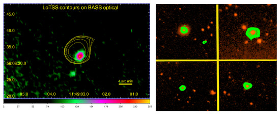 - Hota, A.; Dabhade, P.; Vaddi, S.; Konar, C.; Pal, S.; Gulati, M.; Stalin, C.S.; Avinash, C.K.; Kumar, A.; Rajoria, M.; et al. RAD@home citizen science discovery of an active galactic nucleus spewing a large unipolar radio bubble on to its merging companion galaxy. Mon. Not. R. Astron. Soc. 2022, 517, L86–L91. [Google Scholar] [CrossRef]