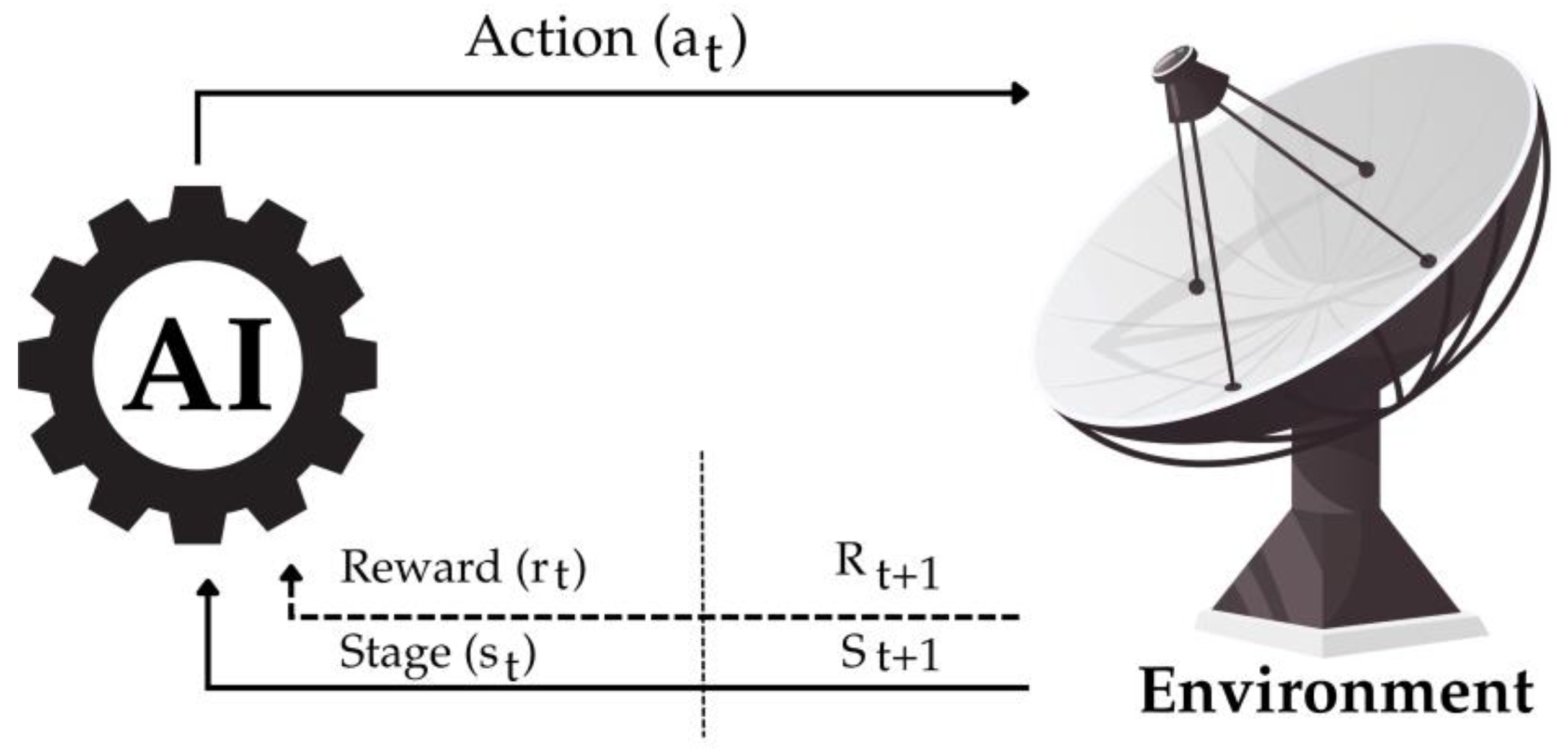 - Sutton, R.S.; Barto, A.G. Reinforcement Learning: An Introduction, 2nd ed.; MIT Press: Cambridge, MA, USA, 2018. [Google Scholar]