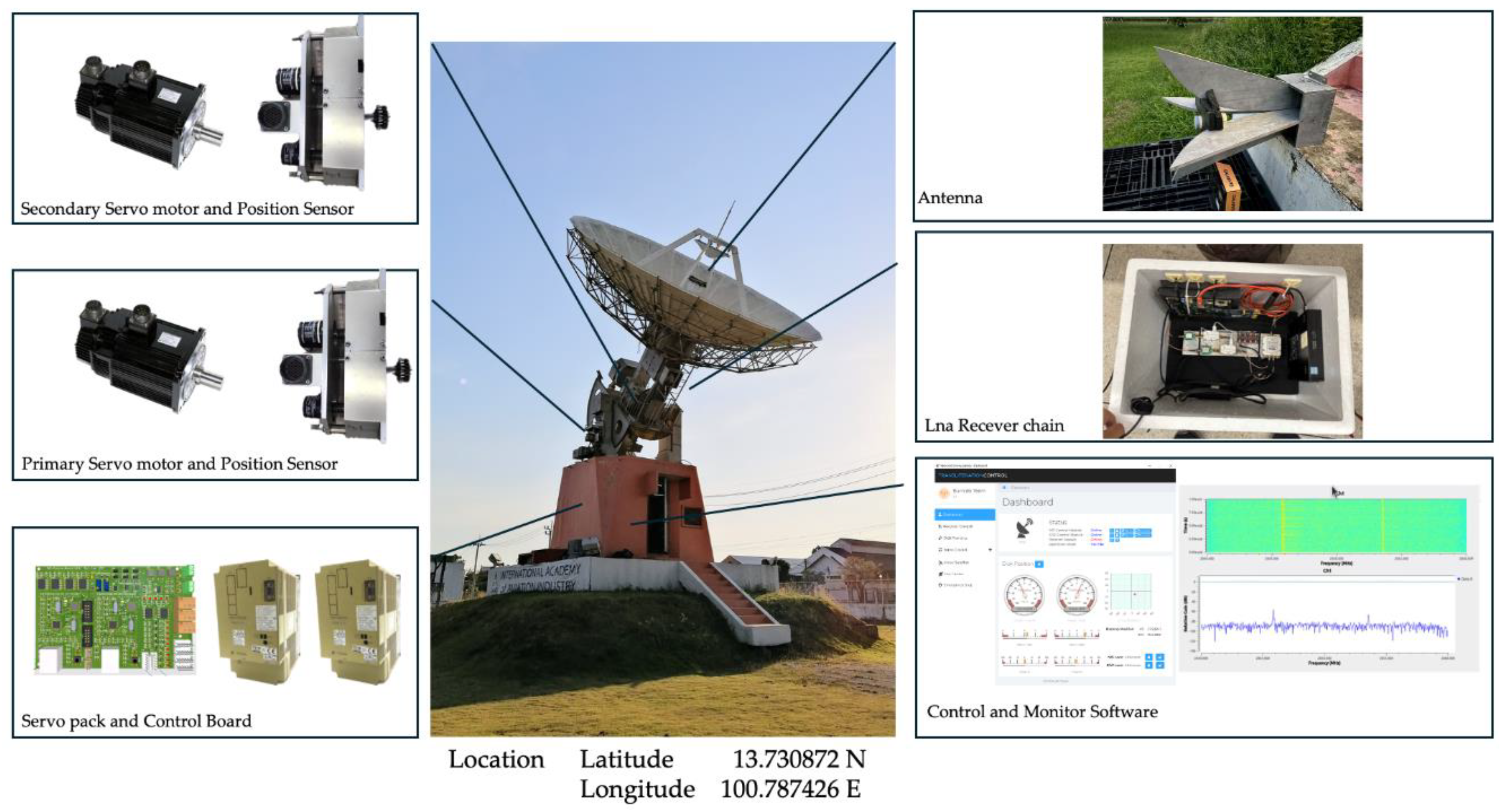 3.1. Experimental Setup on the Renovated 12-m Radio Telescope at KMITL