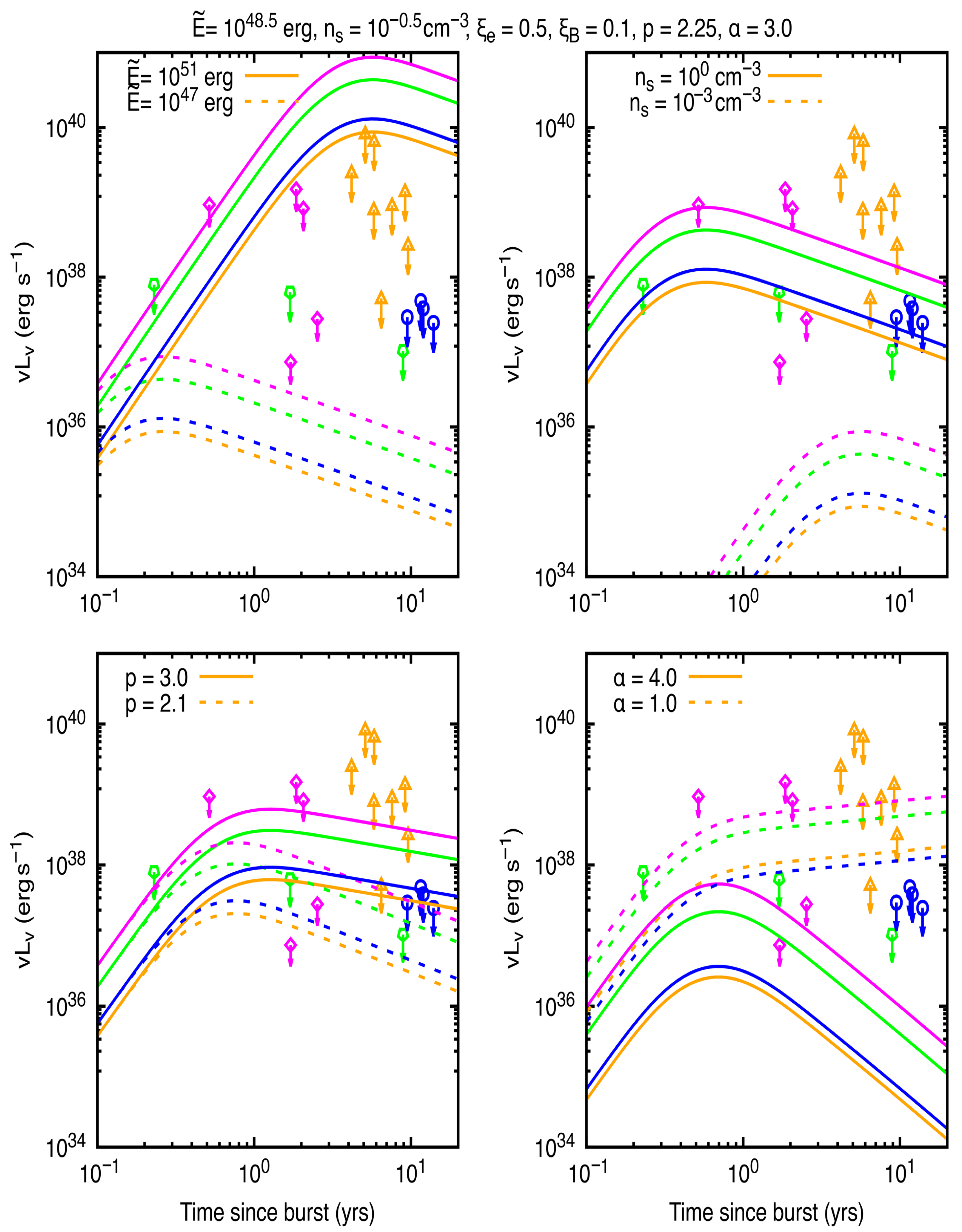 - Joint multi-band and imaging tests: Combining 1–100 GHz light curves with VLBI size measurements and late-time calorimetry can break degeneracies between and , anchoring the sub-relativistic dynamics during the deep Newtonian phase. Broadband fits that track the synchrotron peak/SSA evolution provide an internal consistency check of the kernel-driven energy injection.