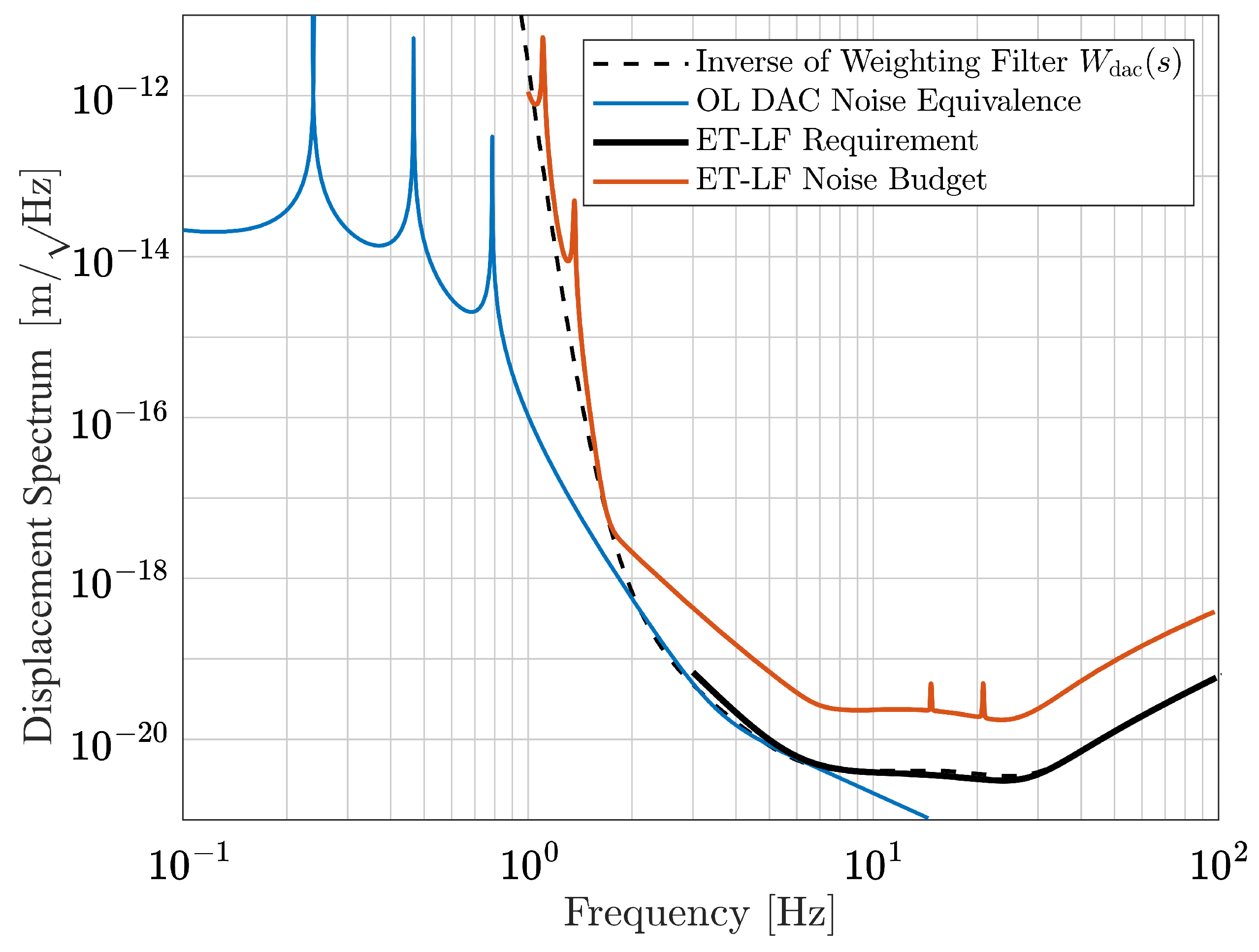 -optimal controller effectively minimizes the variance of selected closed-loop control signals. The requirement on the DAC noise is a hard limit. The open-loop equivalent spectra must not exceed the detector’s sensitivity curve. This can be captured by an
