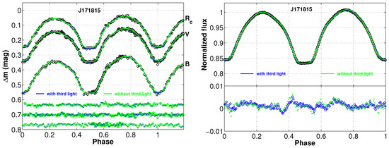- Van Hamme, W.; Wilson, R.E. Third-Body Parameters from Whole Light and Velocity Curves. Astrophys. J. 2007, 661, 1129–1151. [Google Scholar] [CrossRef]