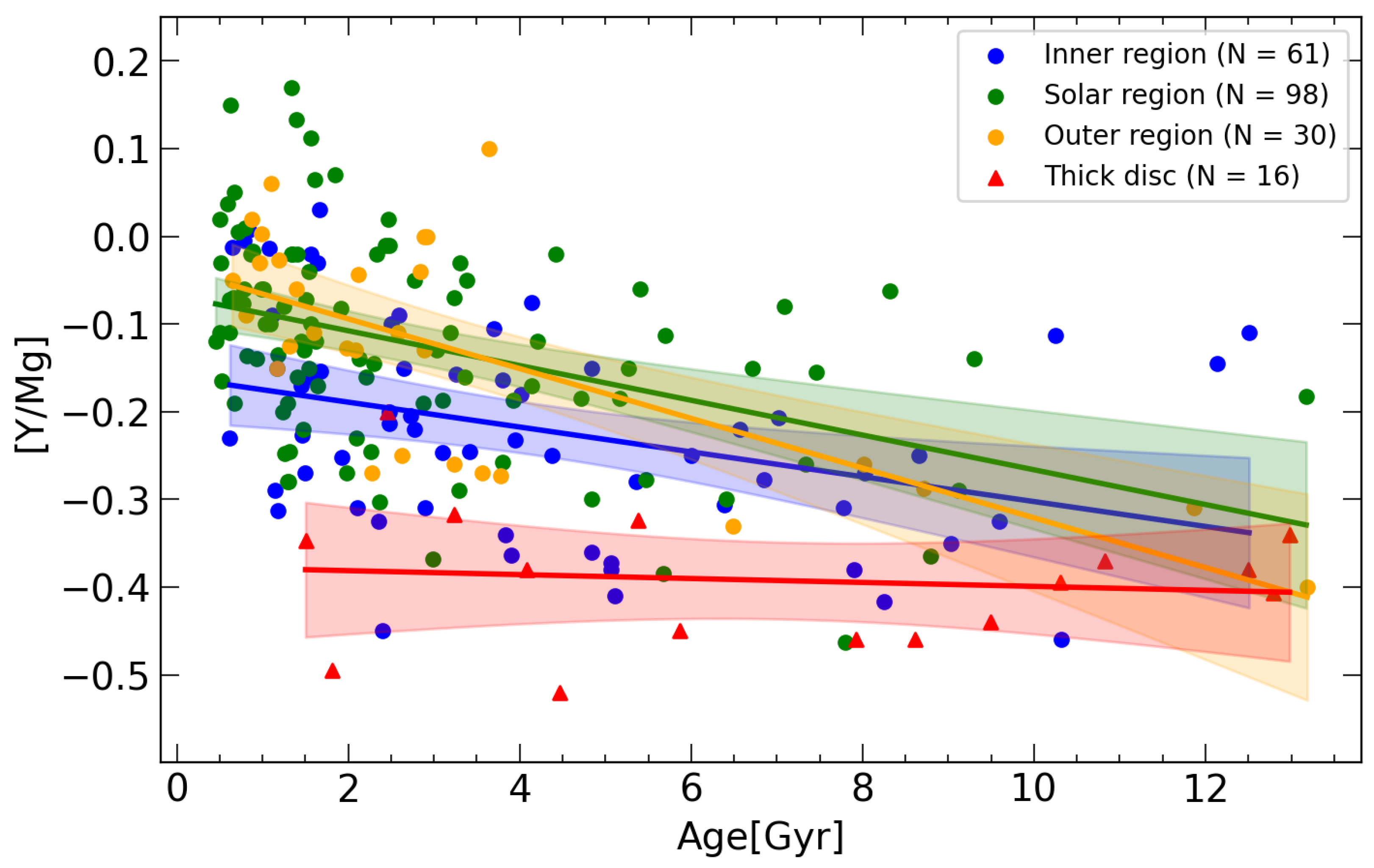 Viscasillas Vázquez, C.; Tautvaišienė, G.; Pakštienė, E.; Drazdauskas, A.; Chorniy, Y.; Bagdonas, V.; Mikolaitis, Š.; Minkevičiūtė, R.; Stonkutė, E. [Y/Mg] as a Stellar Chronometer: Combining Asteroseismic and Chemical Data. Galaxies 2025, 13, 136. https://doi.org/10.3390/galaxies13060136