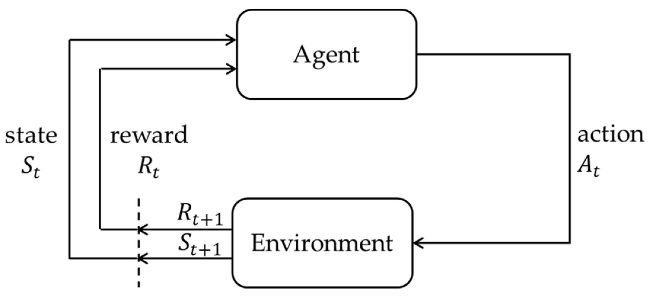- Sutton, R.S.; Barto, A.G. Reinforcement Learning: An Introduction, 2nd ed.; The MIT Press: Cambridge, MA, USA, 2018; p. xxii. [Google Scholar]