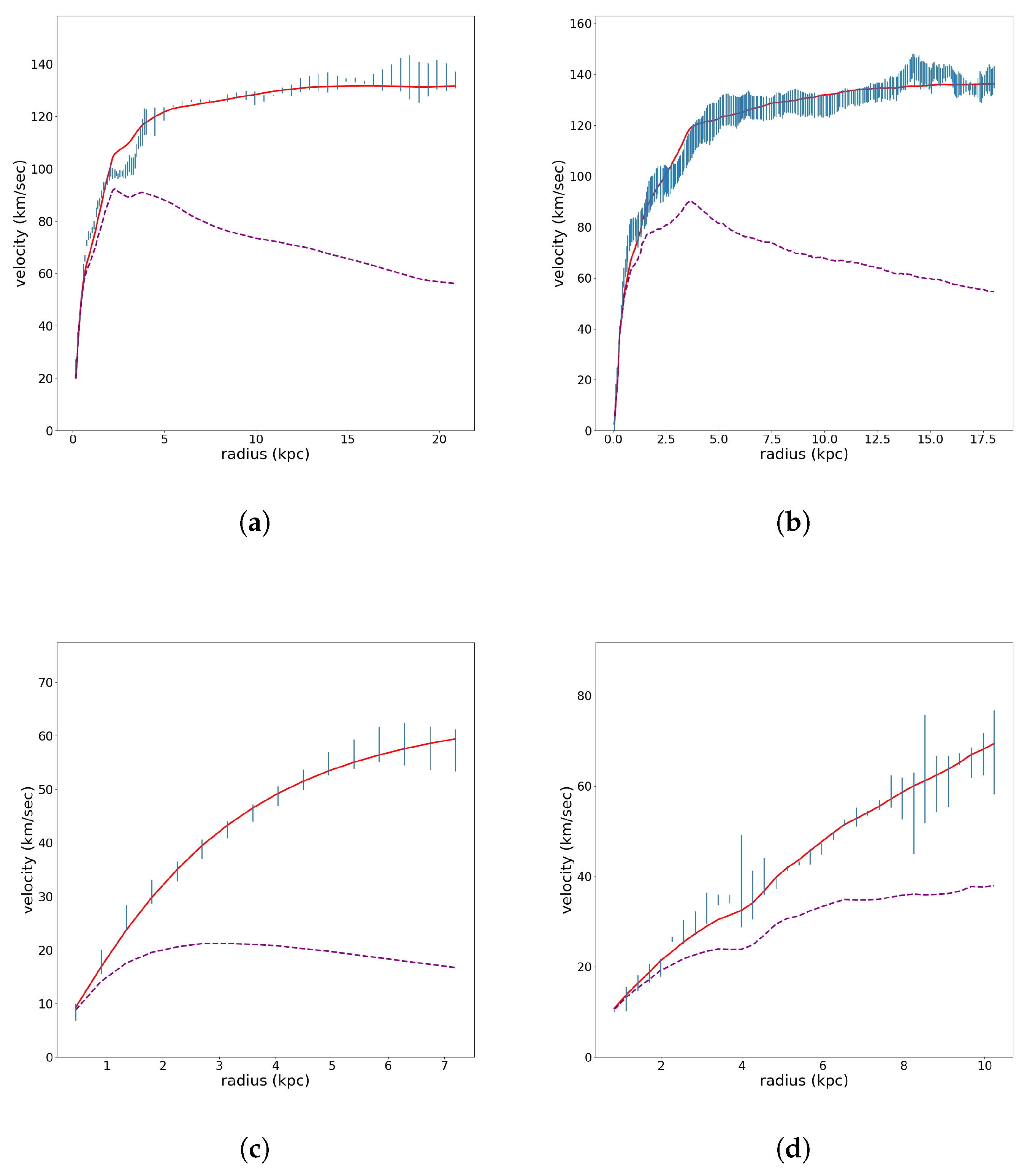 - Sofue, Y.; Rubin, V. Rotation Curves of Spiral Galaxies. Annu. Rev. Astron. Astrophys. 2001, 39, 137. [Google Scholar] [CrossRef]