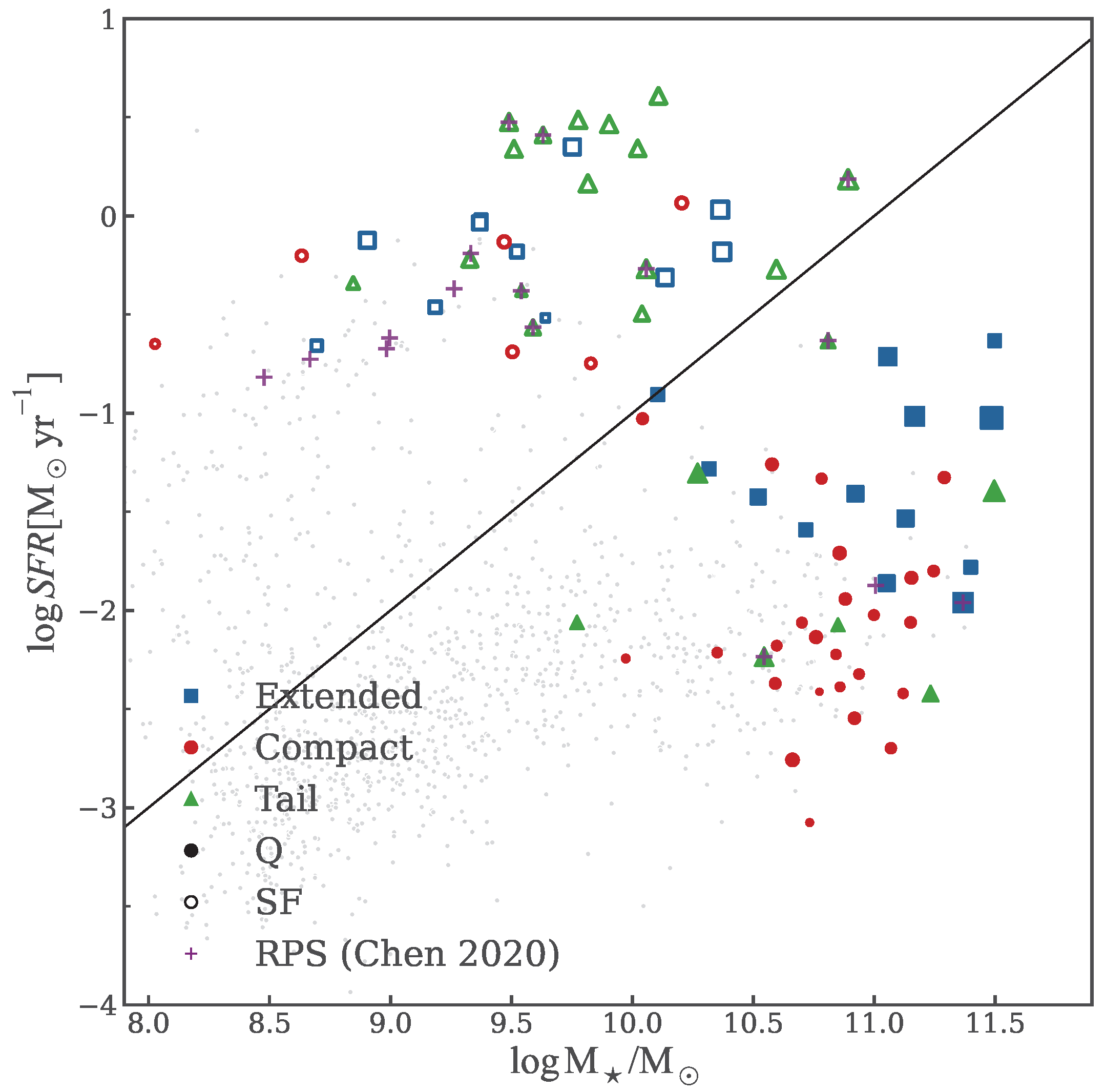 3.1. Star-Forming and Quiescent Populations