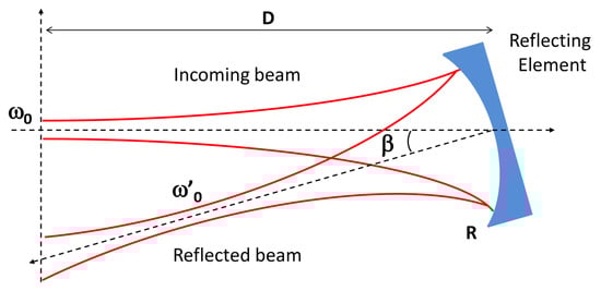 Schematic representation of how a Gaussian beam is back-reflected by a surface. and are the waists of the incident and reflected beams, respectively. D is the distance between the beam waist position and the surface with reflectance R, and is the tilt angle of the surface [8].