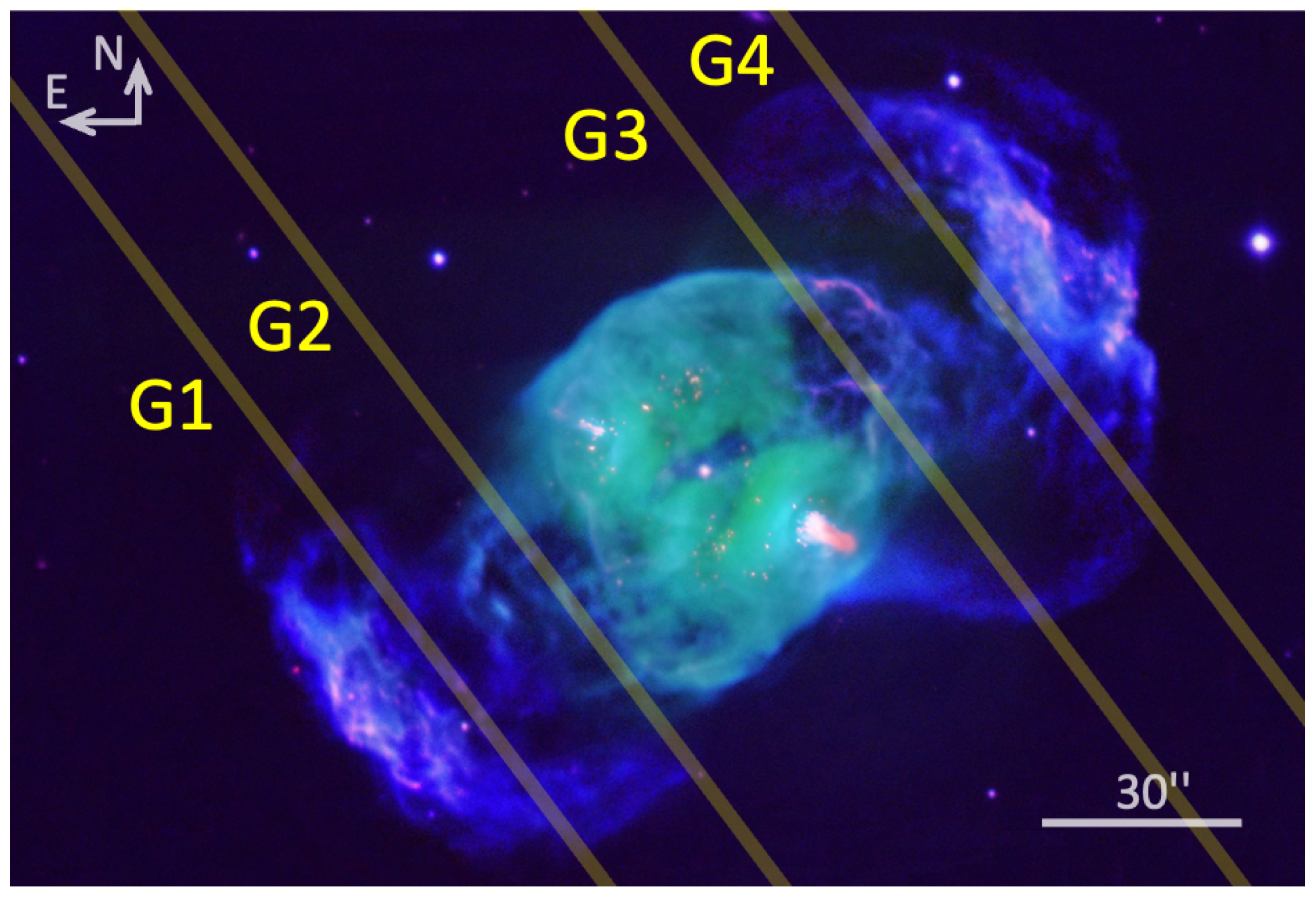 | B4 | 90° | [O iii] | 900 | 30″ to N | ||
